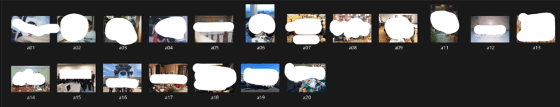 データ名の頭文字を『a』としてお写真の時系列順に『a01』『a02』~~『a020』というふうに番号振り分けをしたら完了です。